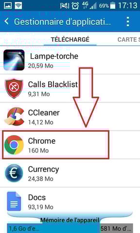 - Sélectionner l’application Chrome