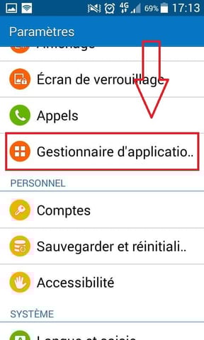 - Sélectionner « Gestionnaires des Applications » ou « Applications »