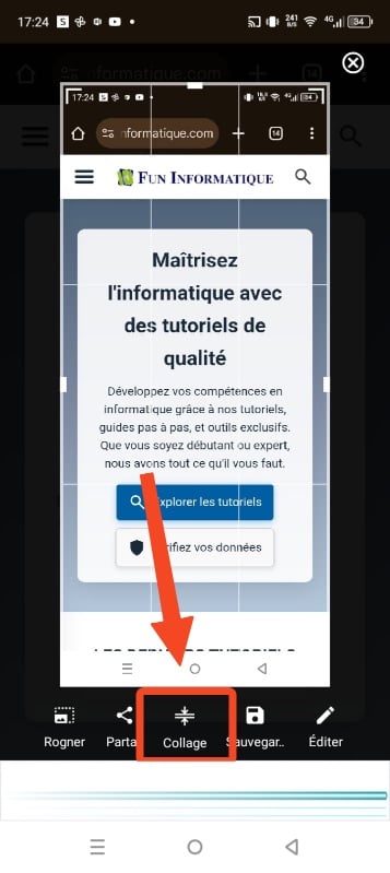 - L’application prendra une capture, puis vous conduira vers un écran d’édition. Appuyez sur l’option collage en bas de l'écran.