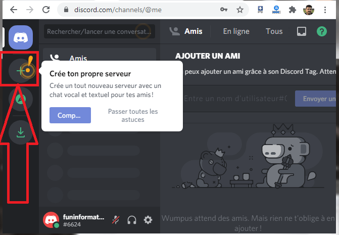 Pour créer un serveur, cliquez simplement sur l'icône + sous votre liste de serveurs, tout à gauche de l'interface.