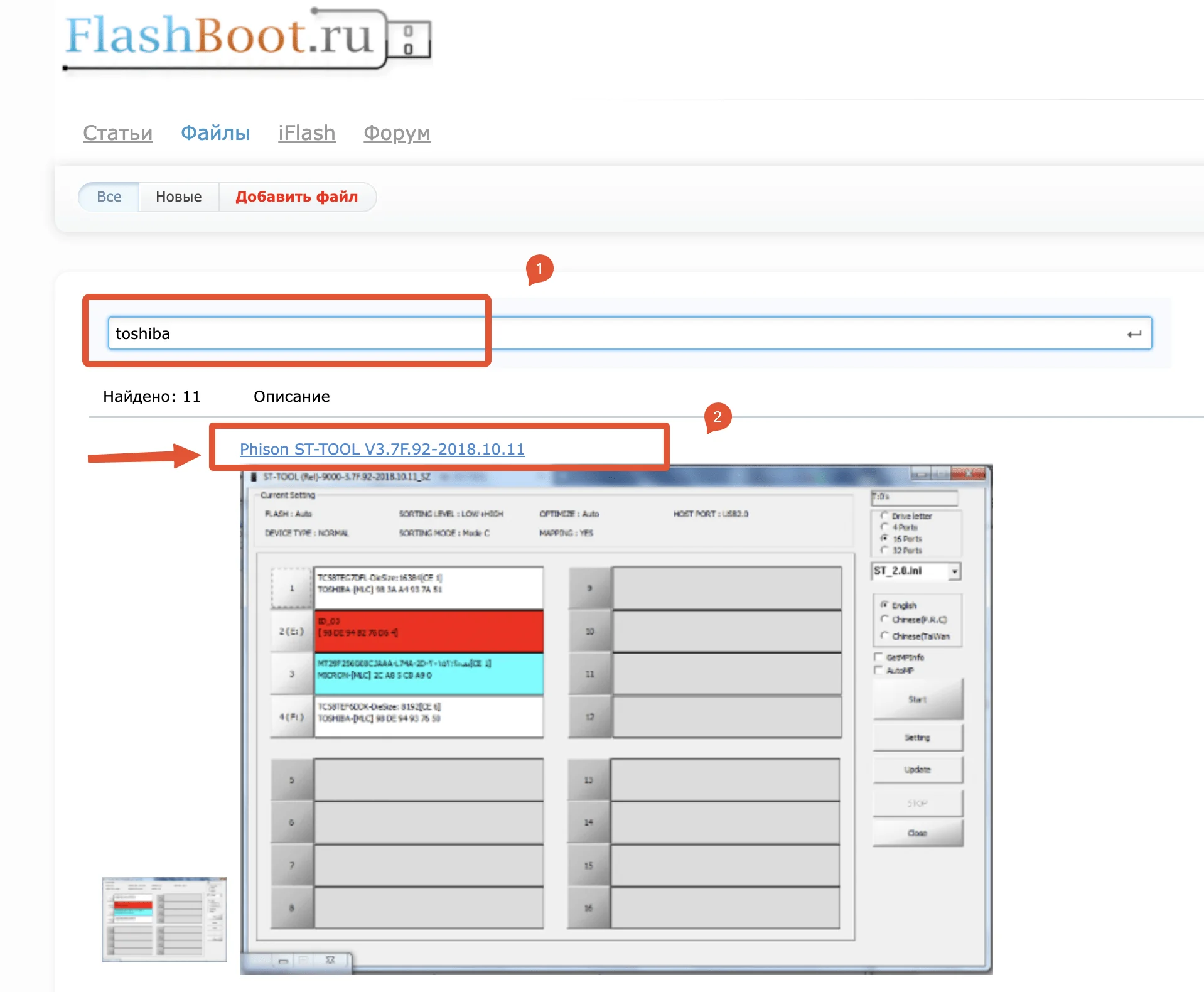 Ensuite, allez sur https://flashboot.ru/files/, collez le nom du fabricant et téléchargez l'utilitaire correspondant.