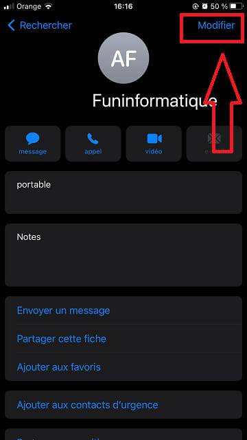 - Ouvrez les détails du contact et accédez au bouton Modifier dans le coin supérieur droit.