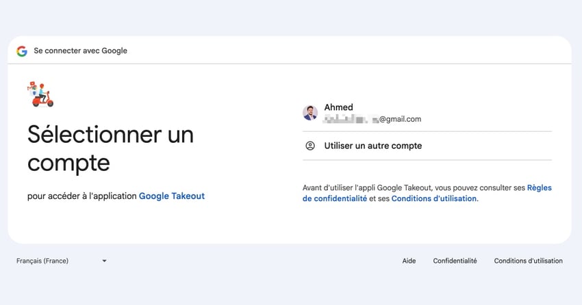 - Google Takeout va vous demander de confirmer votre identité. Vous devrez peut-être vous reconnecter, c'est normal, c'est pour protéger vos données.