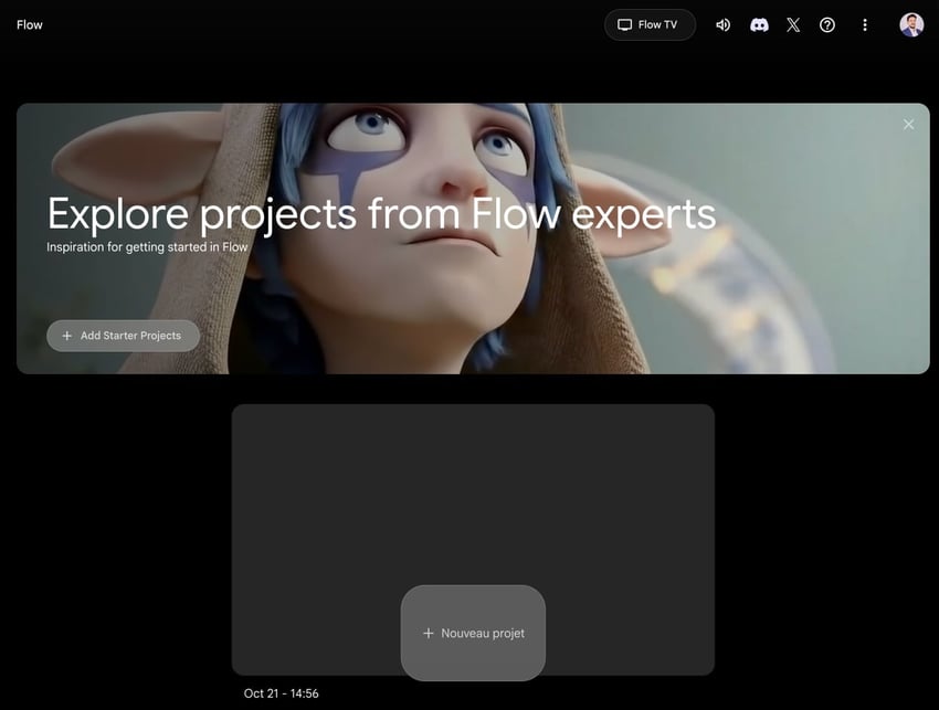 Rendez-vous sur labs.google/flow et connectez-vous avec votre compte Google. L'interface est épurée, presque minimaliste. Pas de menus compliqués, pas de réglages techniques à maîtriser.