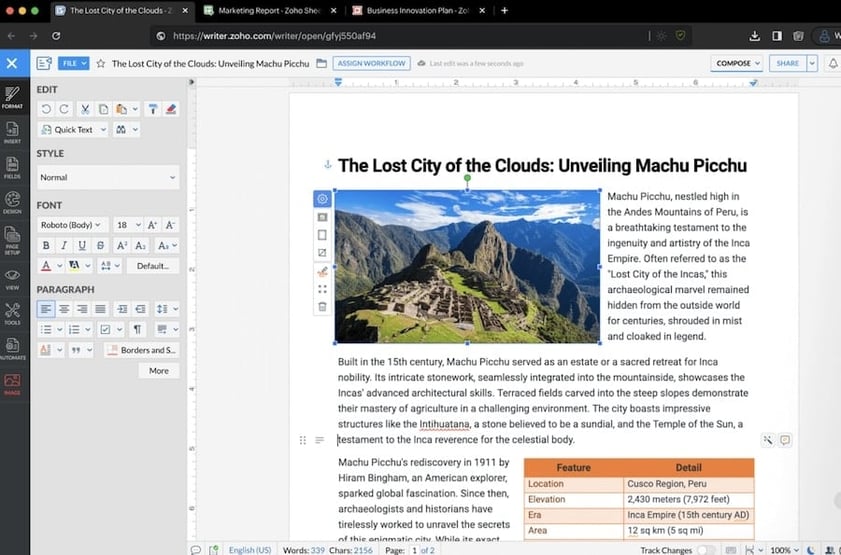 Avec Writer, Sheet et Show, vous pouvez facilement créer et modifier des documents, des feuilles de calcul et des présentations. Son interface, avec des barres d'outils sur le côté gauche, est un peu déroutante au début, mais mérite qu'on s'y habitue. Un plus agréable : l'assistant IA intégré, Zia, pour vous aider.