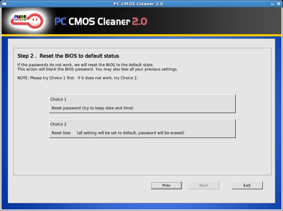 Une fois PC CMOS Cleaner lancé, suivez les étapes suivantes :