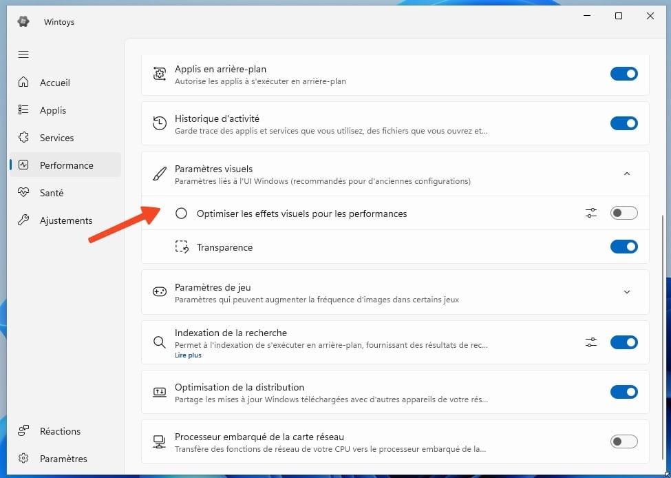 - Si tu as un vieux PC, tu peux activer "Meilleures performances" pour désactiver les effets visuels